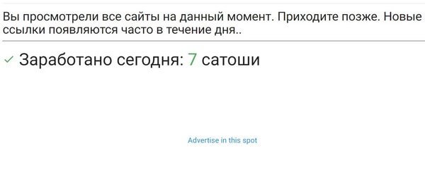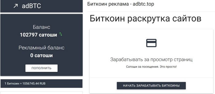 Фактически моментально можно заработать порядка 1000 Сатоши. Интерфейс adbtc на русском языке, поэтому не должно возникнуть никаких проблем с интерфейсом.