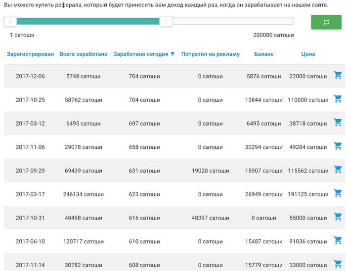На сервисе есть биржа рефералов. Любой желающий может купить или продать рефералов. Большинство хотят продавать. Выбор очень большой.