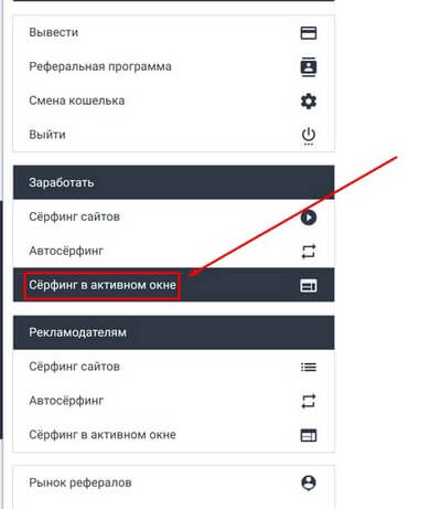 1. Серфинг в активном окне. В левом сайдбаре есть пункт: заработать серфингом. Я рекомендую зарабатывать на "активной серфинге" (вкладку нельзя закрывать), т.к. оплата будет максимальная, а времени на это уйдет крайне мало: