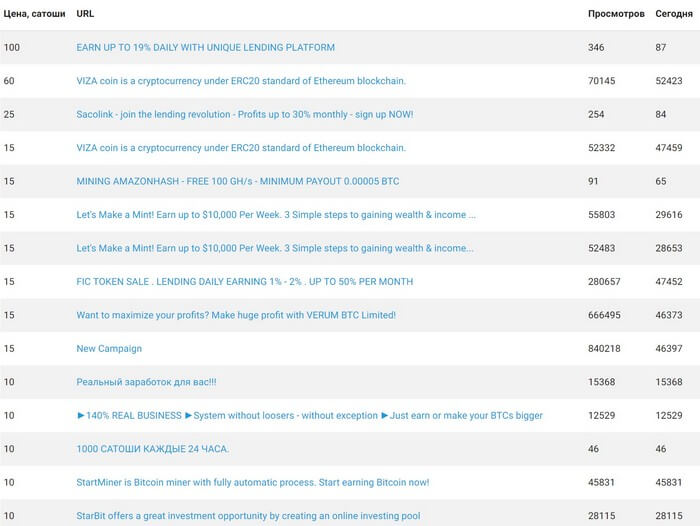 Вместо вывода Сатоши, есть возможность покупки рекламы. Это еще одна уникальная возможность Adbtc. Покупка серфинга своего сайта.