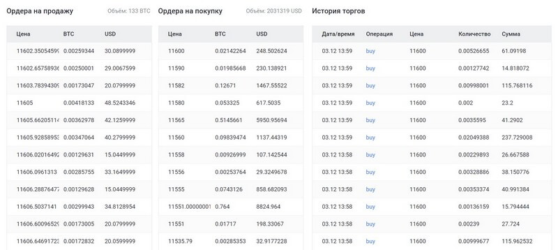 В отличии от других криптобирж, Exmo обладает удобством. Ваши заявки показываются справа.