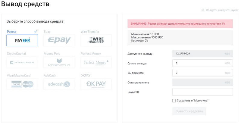 - EUR (варианты пополнения: Payeer, CryptoCapital, OKPAY, Perfect Money, AdvCash, Epay, SEPA, Money Polo, Neteller, Payza)