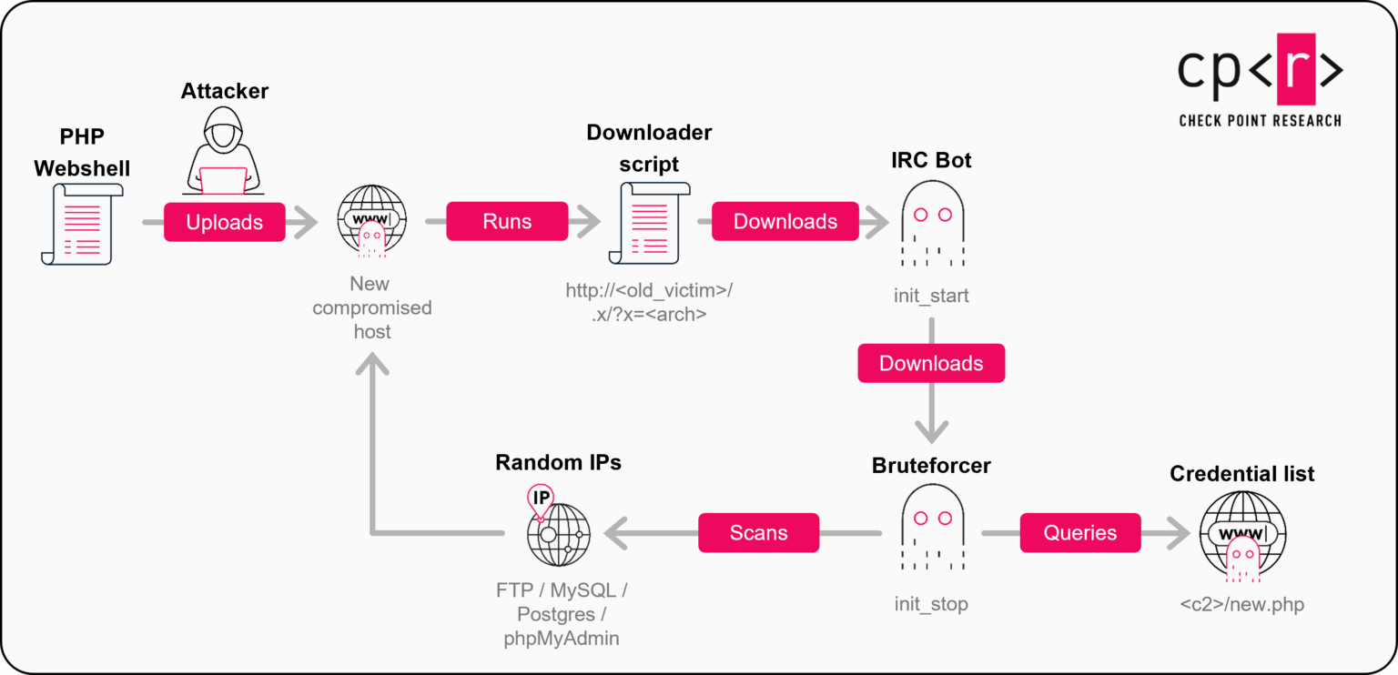 Как теперь сообщают аналитики Check Point, в середине 2025 года была найдена более продвинутая версия этой Go-малвари. Новая модификация получила сильно обфусцированный IRC-бот, переписанный на кроссплатформенном языке, улучшенные механизмы для обеспечения устойчивости, новые техники маскировки процессов и динамические списки учетных данных.