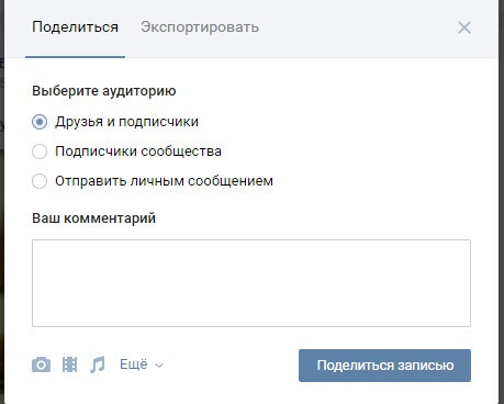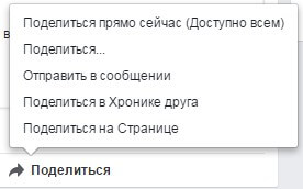 В ВКонтакте, Facebook и Одноклассниках есть три варианта отправки репоста: в личку, к себе на стену и в группу.