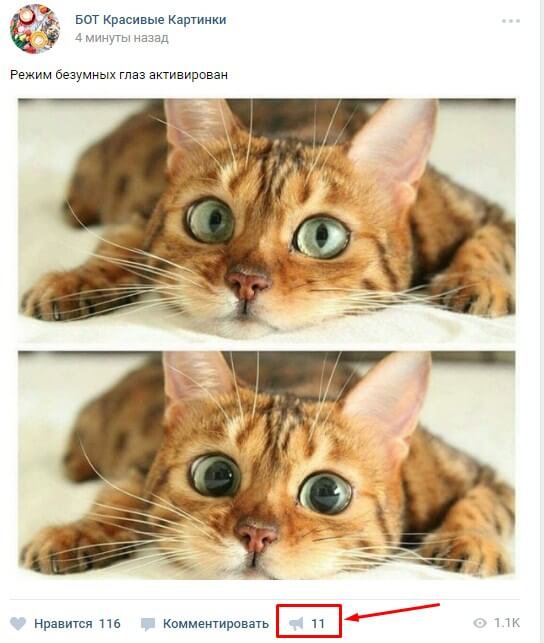 Что может дать накрутка репостов? Как минимум это увеличит счетчик на "мегафоне". Как правило, большое число привлекает внимание и пользователь с большим процентом вероятности обратит внимание на пост.