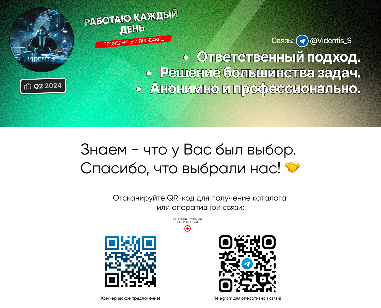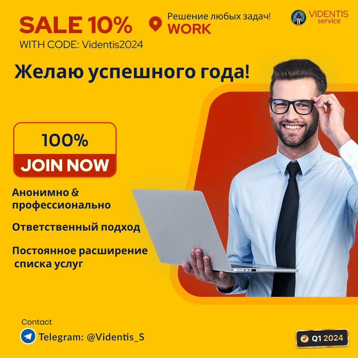 Начался новый месяц, август, последний месяц лета, рад приветствовать вас здесь. Готов предложить вам услуги и поддержку. Пусть этот месяц принесет вам много удачных сделок и приятных моментов! Обновление каталога услуг от 1.08.2024, спрашивайте в лс и по контактам ниже.