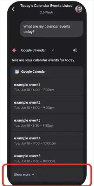 Дело в том, что Calendar Events отображает только пять последних событий, а остальные скрыты под кнопкой «Show more». Однако при запросе Gemini парсит их все, включая вредоносное. При этом пользователь не увидит вредоносное название, если не развернет список событий вручную.