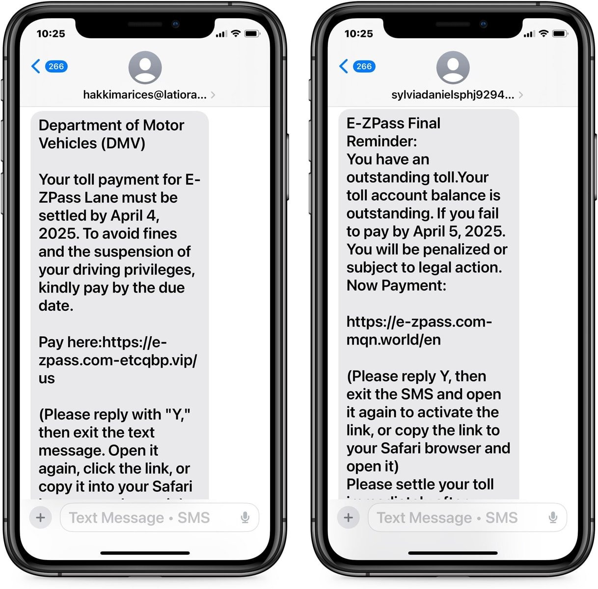 Исследователи писали, что с октября 2024 года несколько хак-групп, использующих его наработки, провели масштабные кампании в Вашингтоне, Флориде, Пенсильвании, Виргинии, Техасе, Огайо, Иллинойсе и Канзасе — везде рассылались поддельные уведомления о неоплаченных счетах E-ZPass.
