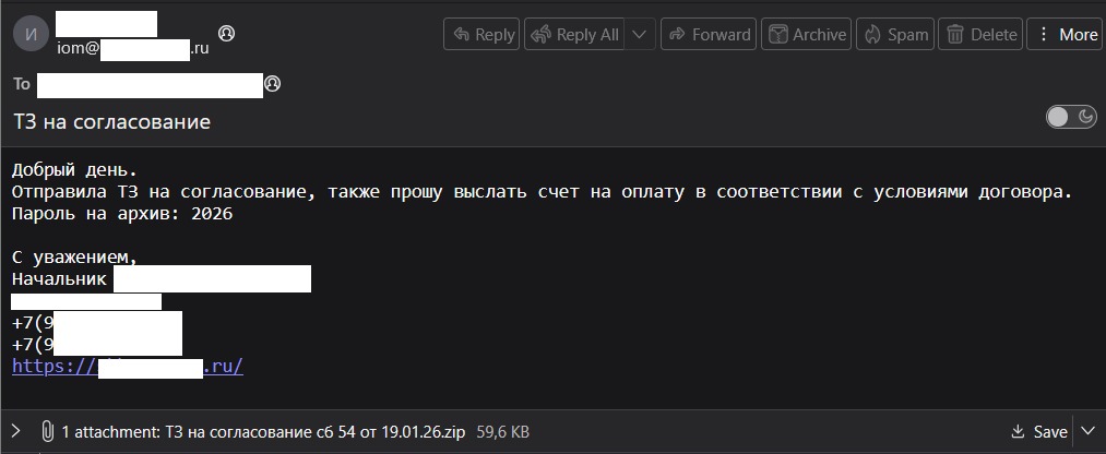 Специалисты компании F6 обнаружили свежую волну вредоносных рассылок от группировки PhantomCore. 19 и 21 января группа провела массированную атаку на российские компании из самых разных отраслей — от ЖКХ и финансов до аэрокосмического сектора и маркетплейсов.