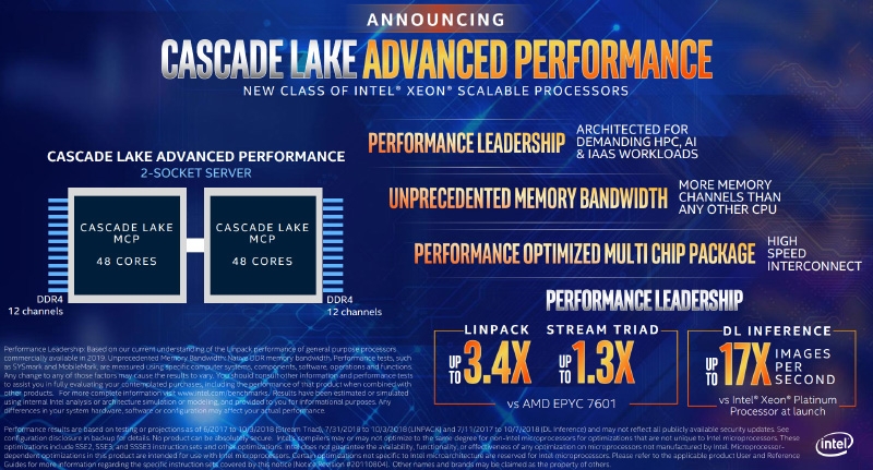 Cascade Lake-AP получат обещанные ранее аппаратные заплатки против некоторых уязвимостей класса Spectre/Meltdown и им подобных. Относительно Skylake-SP в новых CPU оптимизирована структура кеш-памяти, повышены рабочие частоты и внедрены инструкции AVX-512/VNNI (vector neural network instructions). Последние предназначены для ускорения вычислений в рамках глубинного обучения и приложений с использованием искусственного интеллекта (ИИ).