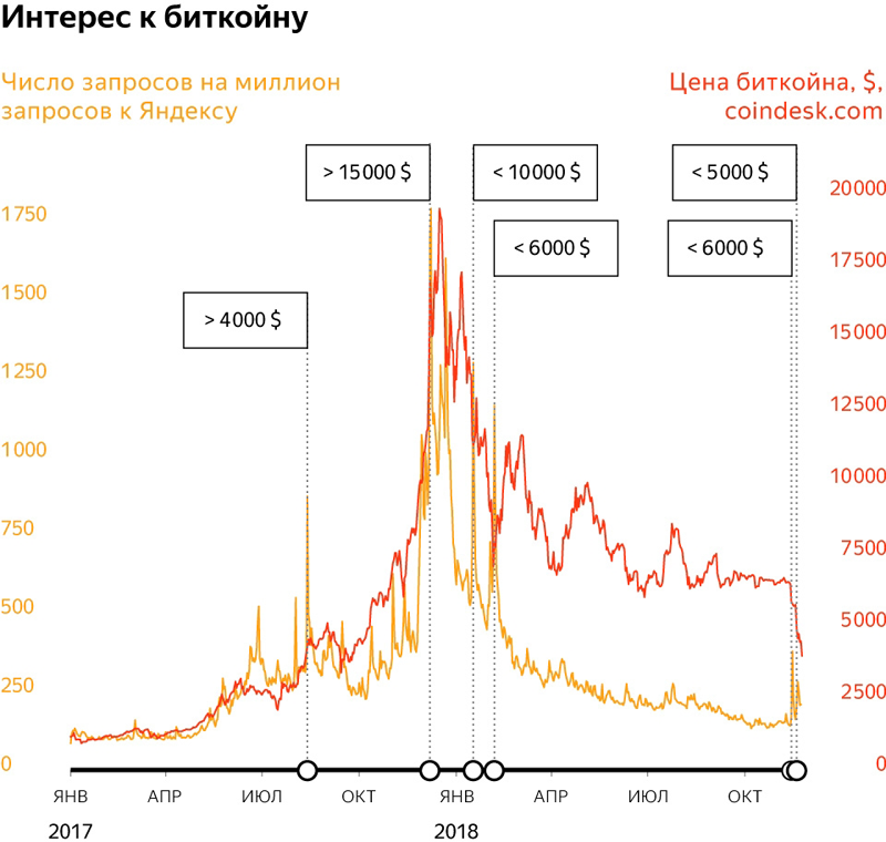 Одним из самых громких событий в прошедшем году, вне всяких сомнений, стал криптовалютный бум, закончившийся крахом виртуальных монет и многочисленных инвестиционных ICO-проектов. Ситуация на рынке цифровых валют сложилась удручающая — и продолжает такой оставаться: если в начале 2018 года стоимость наиболее востребованной криптовалюты — биткоина — доходила до внушительных 17 тысяч долларов США, то сейчас эта денежная единица торгуется в районе $4 000, что свидетельствует о более чем четырёхкратном снижении цены. Согласно аналитическим данным «Яндекса», на волне всплеска интереса аудитории к майнингу почти 2 тысячи поисковых запросов из миллиона касались темы цифровых денег, курс которых интересовал аудиторию Рунета порой даже больше, чем курс доллара. Однако со временем ажиотаж схлынул — и цена биткоина устремилась вниз, увлекая за собой другие криптовалюты и сводя к нулю желание предприимчивых пользователей заниматься добычей майнингом. Немалую роль в обесценивании цифровых денег сыграли различные правительственные инициативы, нацеленные на регулирование криптовалютной отрасли, а также отсутствие механизмов оценки рисков и возврата инвестиций.