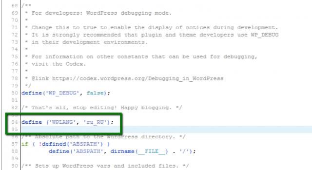 define ('WPLANG', 'ru_RU');