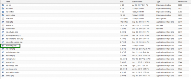 1. Найдите wp-config.php файл в корневой папке вашего сайта.