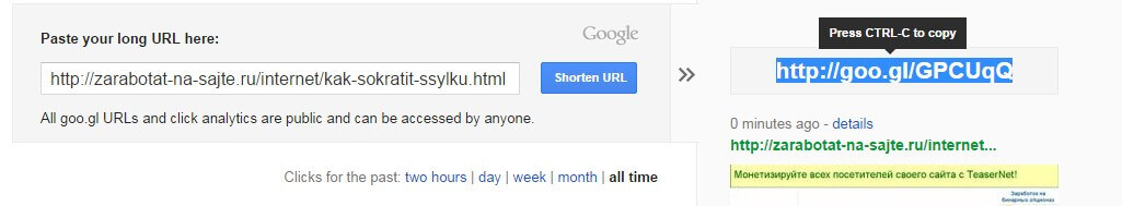 Сократить ссылку — уменьшить ее длину через какой сервис (сайт) до маленькой длины URL (в среднем до 10..15 символов)