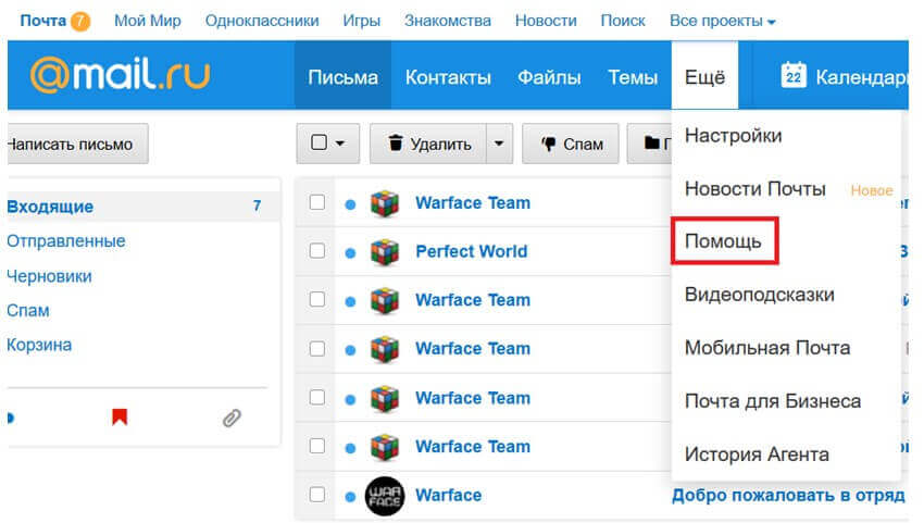 В настройках почты можно даже не искать заветную кнопку, потребуется перейти во вкладку помощи.