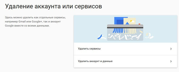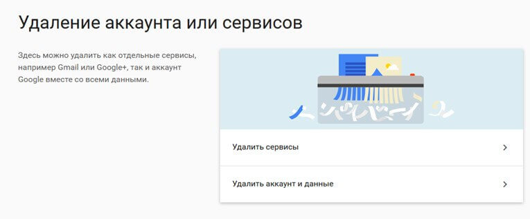 Необходимо поочерёдно перейти по пунктам «Отключить сервисы» и «Удалить аккаунт и данные», после чего почта будет полностью удалена.