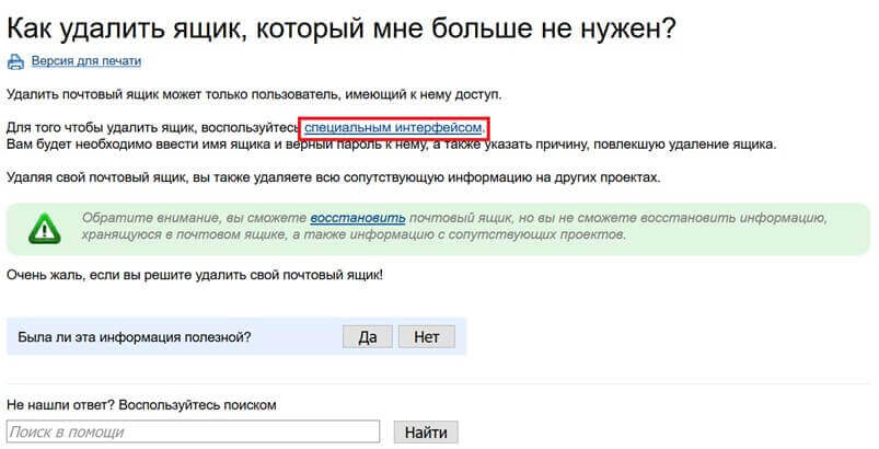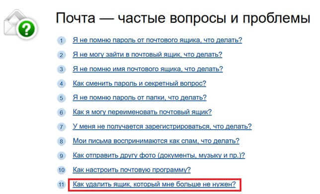 В данной вкладке понадобится найти и нажать на ссылку «Как удалить ящик, который мне больше не нужен?».