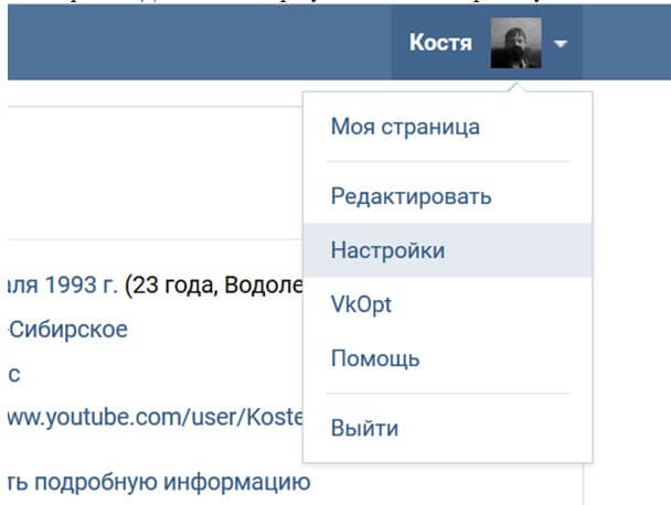 Для не полного удаления аккаунта потребуется перейти в настройки.