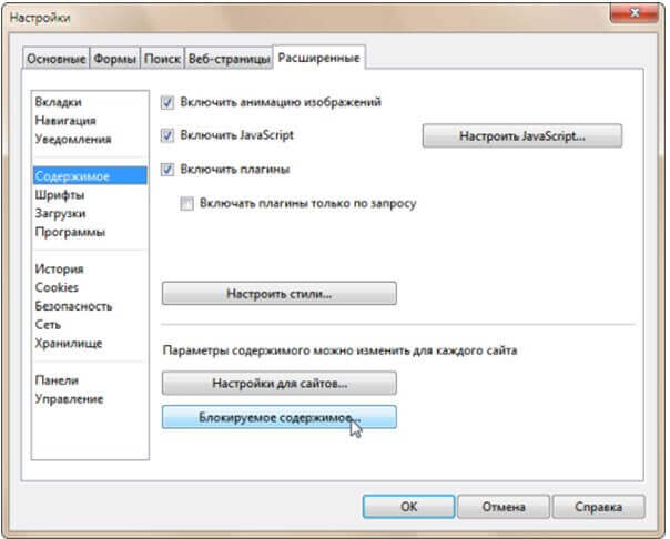 Важно! Этот метод работает только со старыми версиями браузера Opera. В версиях от 40 и выше запретить прогрузку сайтов можно только с помощью установки расширений.
