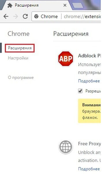 1. В Хроме надо зайти в «Настройки» и выбрать раздел «Расширения»;