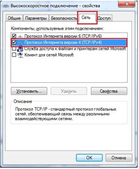 3. В появившемся окне найти пункт «Протокол Интернета версии 4» и открыть его двойным кликом;