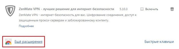 2. Внизу, после всех уже установленных плагинов, нажать на «Ещё расширения»;