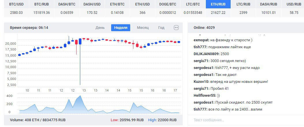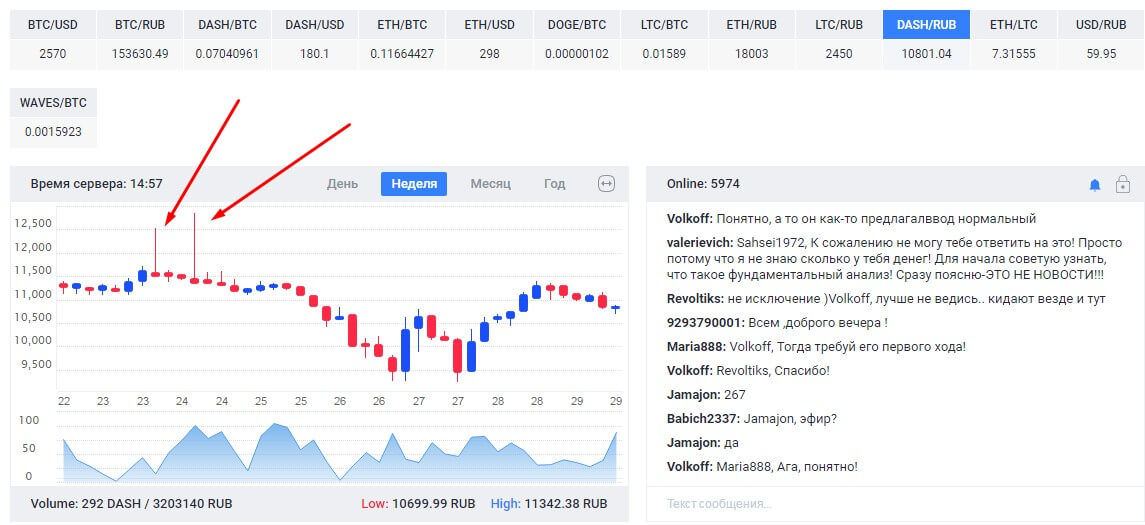 Пример: пара Eth/Rub. В моменте цена падала с 20 тыс до 2.5 тыс.