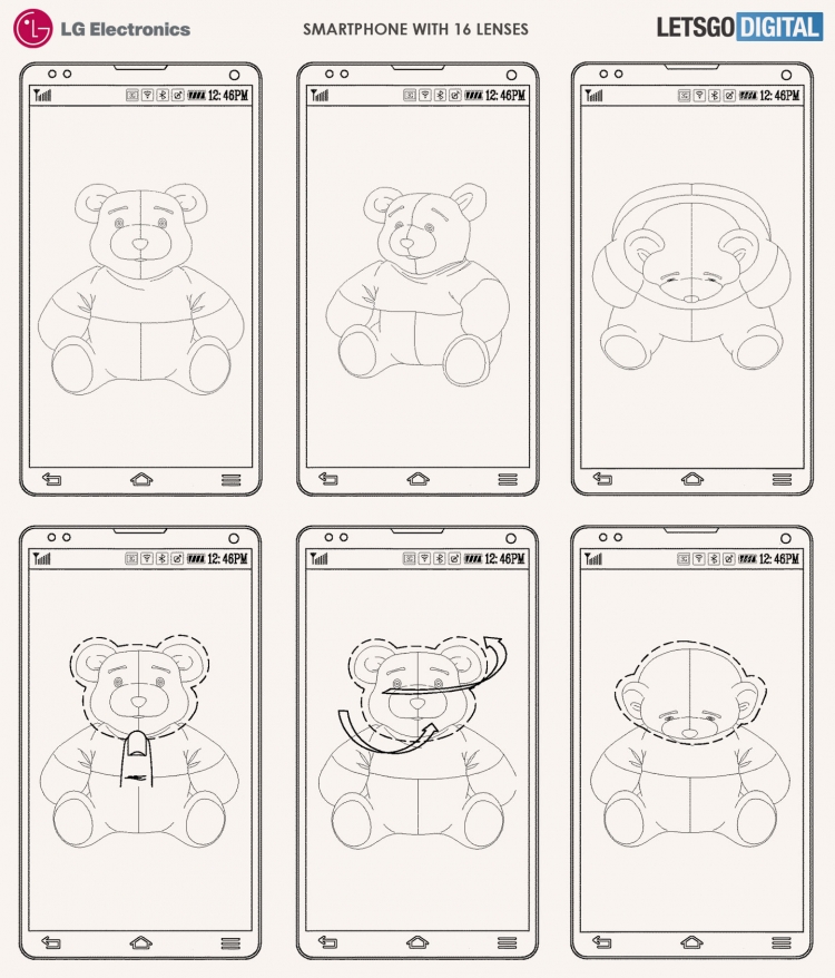 Кажется, такое количество камер — уже перебор, особенно для смартфонов. Но LG, по крайней мере, рассматривала эту идею на таком уровне, что решила оформить патент. Эти 16 камер должны позволить создать не просто объёмное изображение, но снимать объект действительно с разных сторон одновременно, давая затем возможность после фотографирования существенно менять угол съёмки, создавать анимацию, менять положение отдельных элементов 3D-модели (например, поворачивать голову заснятого персонажа), заменять лица на более удачные варианты с других 3D-фотографий и так далее.