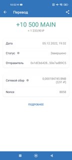 3. Пополни свой криптокошелек токенами MAIN и BNB.