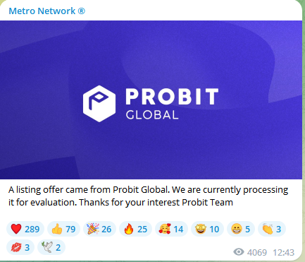 Был запрос на биржу ProBit о листинге токена $MTR