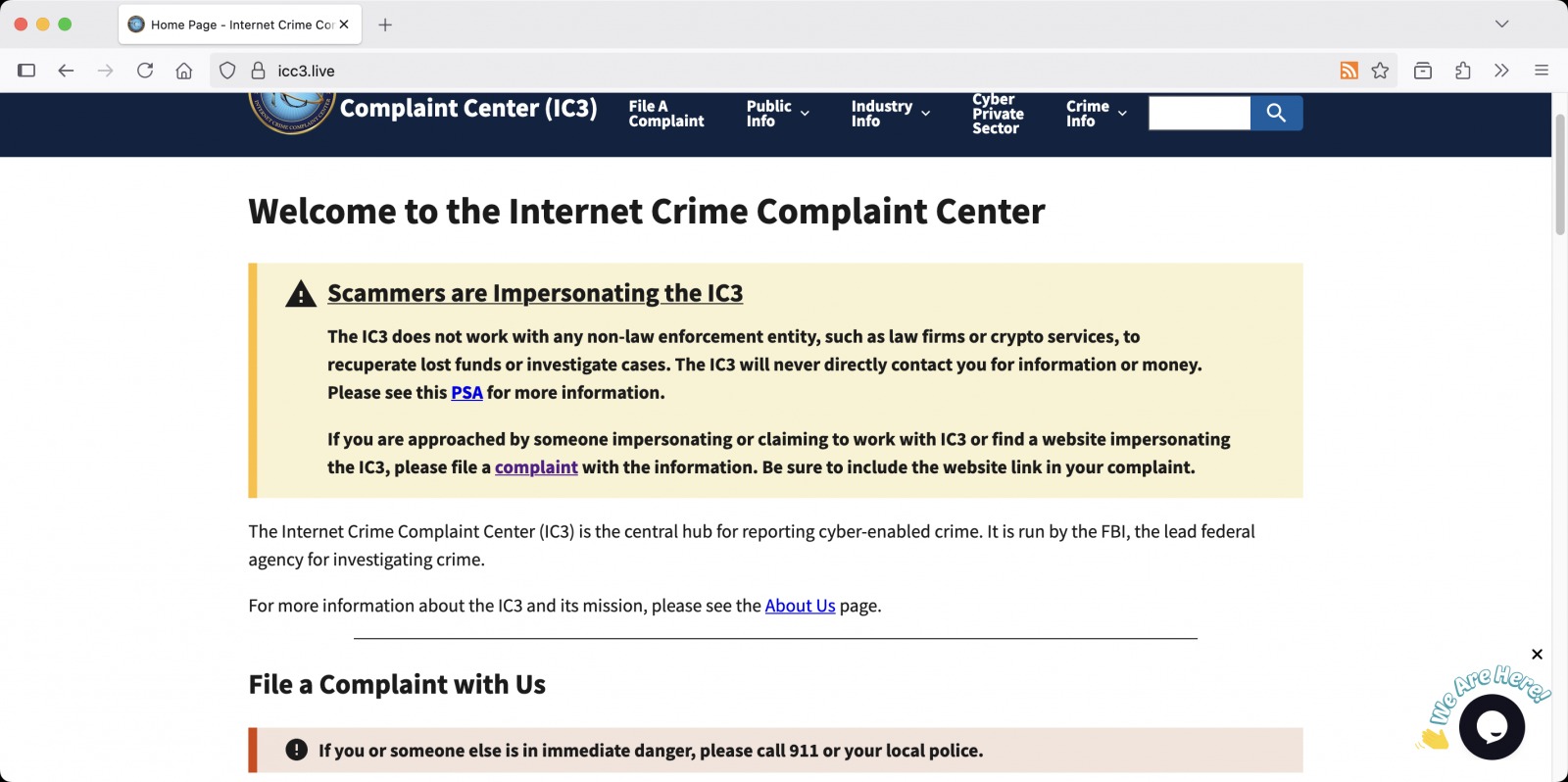 Хотя ФБР не приводит ссылки на домены, имитирующие IC3, журналисты издания Bleeping Computer обнаружили несколько таких примеров: icc3[.]live, practicinglawyer[.]net и ic3a[.]com. Причем первый сайт даже показывает точно такое же предупреждение о мошенниках, как и настоящий сайт Центра приема жалоб на мошенничество в Интернете, предостерегая, что злоумышленники выдают себя за сотрудников IC3, предлагая пострадавшим «помощь» в возвращении украденных средств.«Злоумышленники создают поддельные сайты, часто слегка изменяя характеристики доменов легитимных ресурсов, с целью сбора личной информации, которую пользователь вводит на сайте (включая имя, домашний адрес, номер телефона, email и банковскую информацию), — сообщают в ФБР. — Например, домены фиктивных сайтов могут содержать альтернативные написания слов или использовать другой домен верхнего уровня, чтобы выдавать себя за легитимный ресурс».
