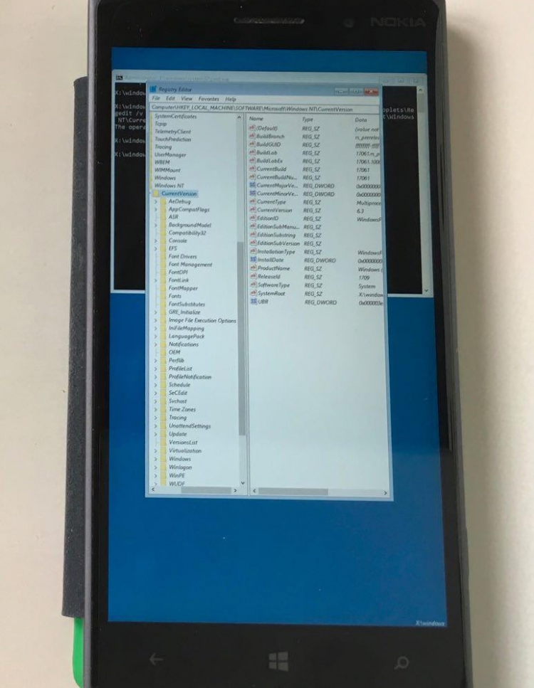 Густав вскоре решил сделать ещё один шаг вперёд и, похоже, загрузил полноценную Windows 10 для ARM (сборка 17061 для 32-бит чипов ARM) на свой аппарат Lumia 1520. Впрочем, пока речь идёт скорее о технологической демонстрации — даже сенсорный дисплей на смартфоне не заработал, несмотря на установленные драйверы.