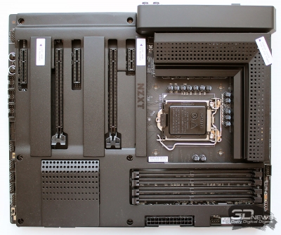 Даже несмотря на тот факт, что лично я предпочитаю минимумом кожухов и максимумом эффективных радиаторов, не могу не отметить, что NZXT N7 Z370 выглядит очень аккуратно и эстетично. Кроме того, такой кожух защищает текстолит от пыли и случайных повреждений. Добавим, что размеры платы составляют 305 × 244 мм, то есть она относится к форм-фактору ATX.