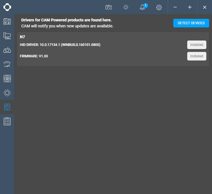 Обновить программу или драйверы можно в следующем окне CAM.