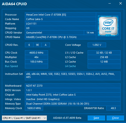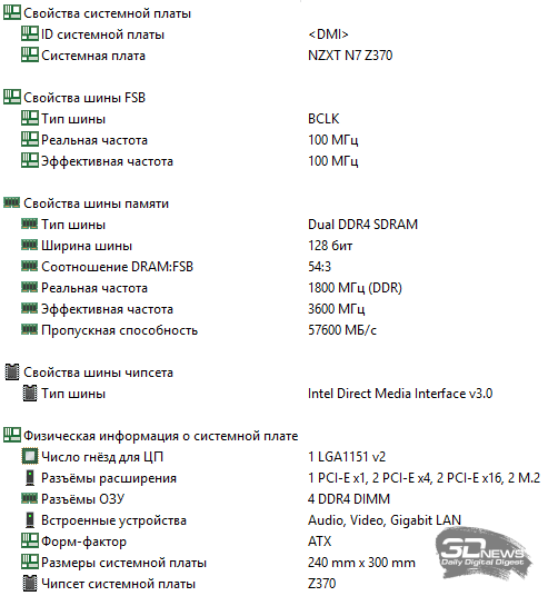 - системная плата: NZXT N7 Z370 (Intel Z370, LGA1151-v2, BIOS 1.0.1 от 28.03.2018);