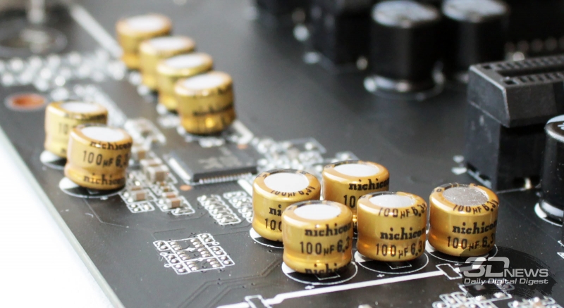 Вокруг него щедро рассыпаны звуковые аудиофильские конденсаторы Nichicon, некоторые из которых распаяны криво.