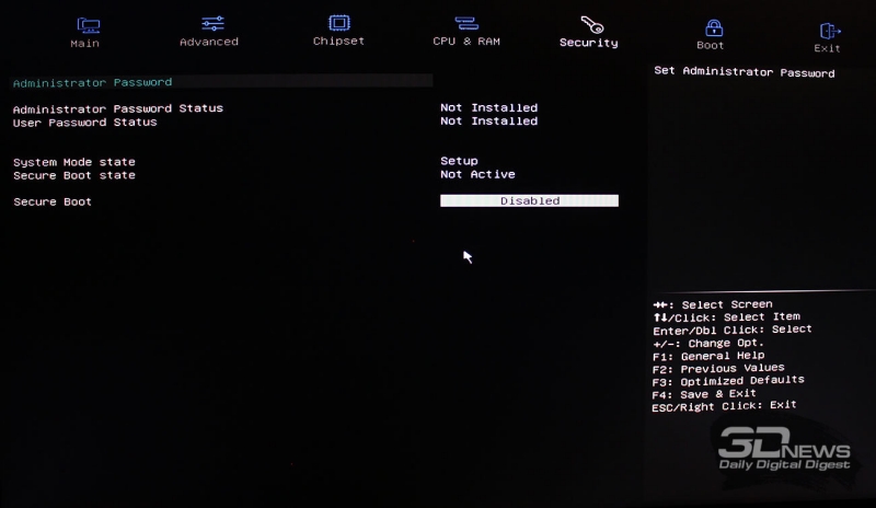 Основные разделы с параметрами безопасности системы, загрузки и выхода из BIOS ничего особенного не содержат. Поэтому ниже мы просто приведём их изображения.