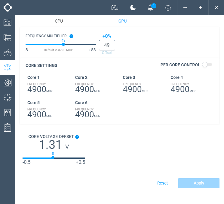 Третья отведена под параметры разгона процессора и видеокарты, где всё просто и наглядно.