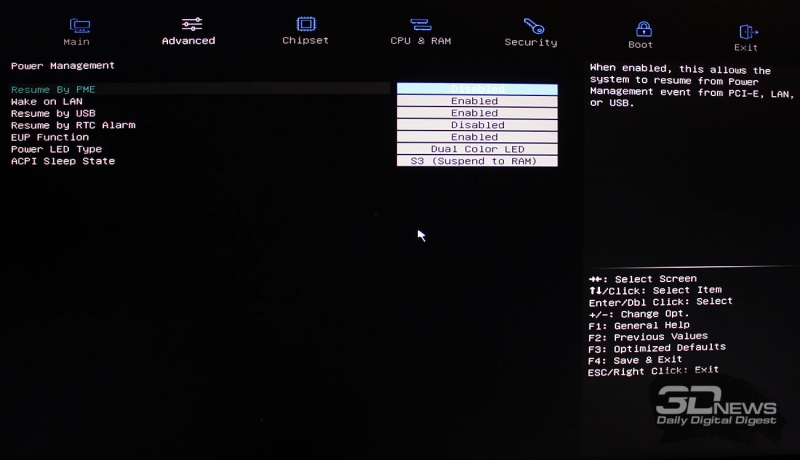 Подразделы с настройками подключенных к плате накопителей и параметрами питания, а также основной раздел чипсета не вызывают никаких вопросов.