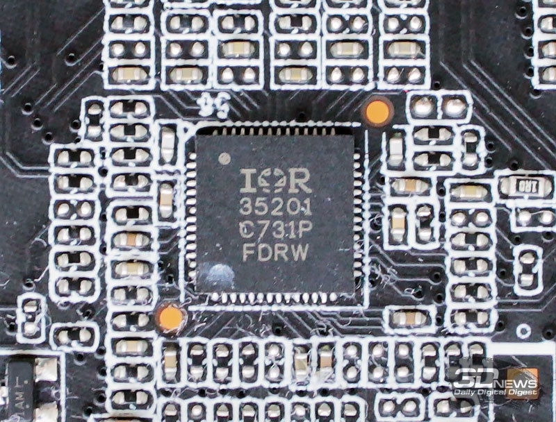 Для управления питанием фаз, отвечающих за VCCSA и VCCIO, на плате есть дополнительный четырёхканальный контроллер IR35204 того же производителя.