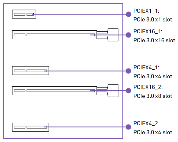Разъёмы для плат расширения 2 слота PCI Express x16 3.0, режим работы x16 или х8/х8;