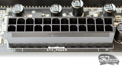 Питание на плату подаётся через стандартные разъёмы с 24 и 8 контактами.