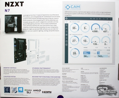 Обратная сторона на порядок информативнее. Здесь рассказывается о ключевых особенностях новинки и программном обеспечении CAM, которое вам уже знакомо по тестам систем жидкостного охлаждения NZXT.