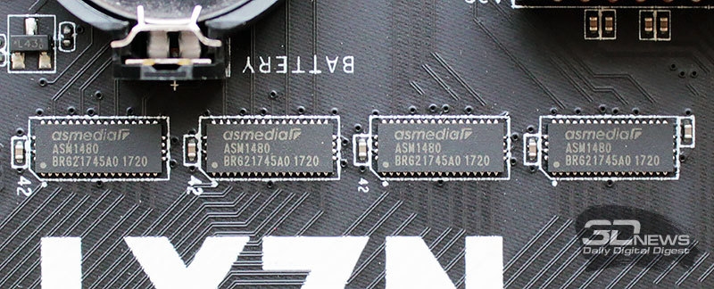 – 8 портов USB 3.1 Gen1 (4 – на задней панели, 4 – подключаются к разъёмам на текстолите);