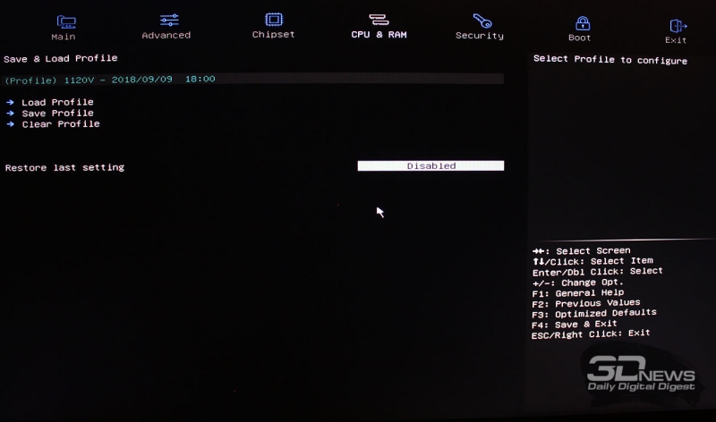 Далее можно сохранить профили с настройками BIOS и использовать их впоследствии.