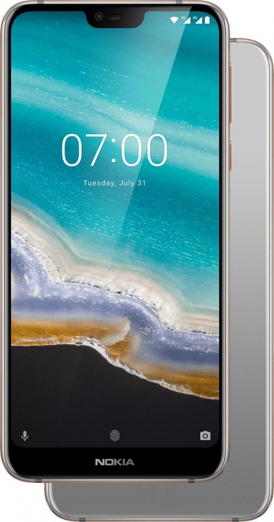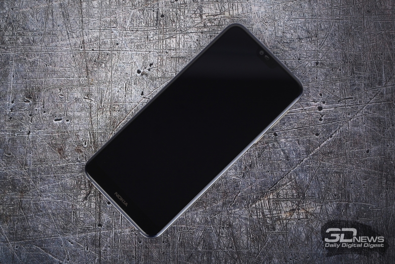 Nokia 7.1, лицевая панель: в вырезе – фронтальная камера, разговорный динамик, сенсор внешнего освещения