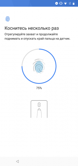 На задней панели расположен сканер отпечатков пальцев – в легком углублении под блоком камеры. Вроде бы недалеко от нее, но на ощупь находится легко, перепутать объектив с дактилоскопическим сенсором почти невозможно. Сам сенсор емкостный, срабатывает очень быстро и с минимальным процентом брака. Продублировать или заменить его системой распознавания лица нельзя – несмотря на теоретическую возможность делать это на любом смартфоне с Android 8.1 Oreo (как здесь), использовать для этого фронтальную камеру слишком опасно для безопасности вашей информации.
