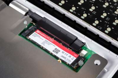 Что касается непосредственно клавиатуры, Pi 500+ оснащается низкопрофильными кликающими переключателями Gateron Blue KS-33. Также устройство использует собственный контроллер Raspberry Pi RP2040 и оперсорсную прошивку QMK. Отмечается, что низкопрофильные кейкапы можно заменить на обычные, однако легко заменить сами переключатели не получится, так как hot swap’а у новинки нет.