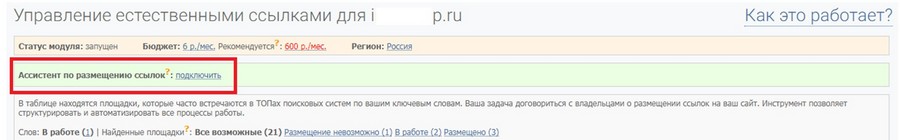 - находите контакты администраторов выбранных площадок, связываетесь с ними и договариваетесь о размещении ссылок. Если не хотите заниматься этой работой, то подключаете ассистента SeoPult, который сделает все за Вас (вам лишь нужно указать бюджет и требования к контенту, если они есть);