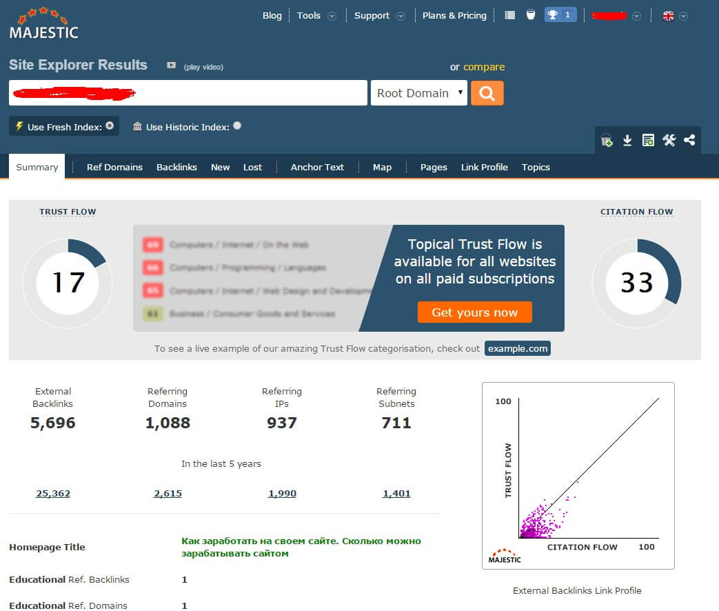 Что примечательно в этой платформе — она интегрирована с Majestic SEO, лидером по ссылкам после Ahrefs, и все данные по ссылкам вы получаете практически из Маджестик.